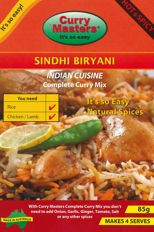 Curry Masters (Sindhi Biryani) is a Complete Curry Mix, you don’t need to add onion, garlic, ginger, tomato, salt, or any other spices.